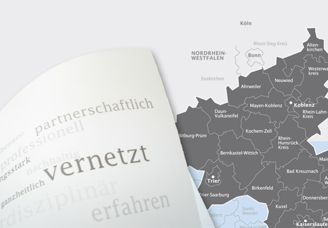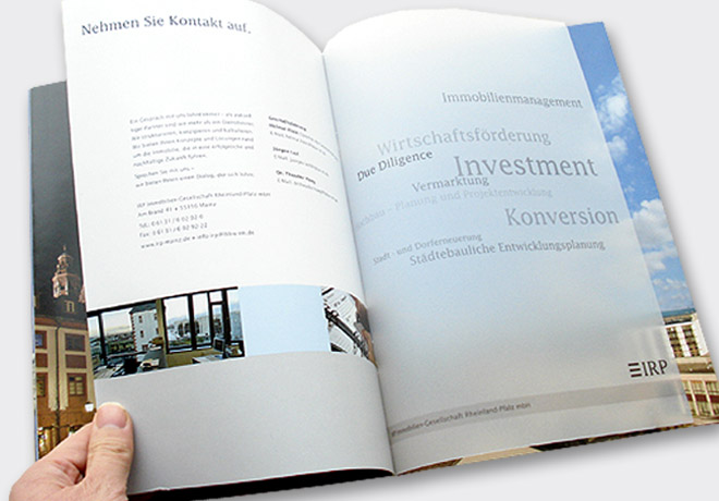 Darstellung eines Unternehmens des LBBW - Konzerns: Die Immobiliengesellschaft Rheinland-Pfalz entwickelt anspruchsvolle Bauprojekte. Der Prospekt stellt transparent Herkunft und Zukunft der Unternehmung vor.