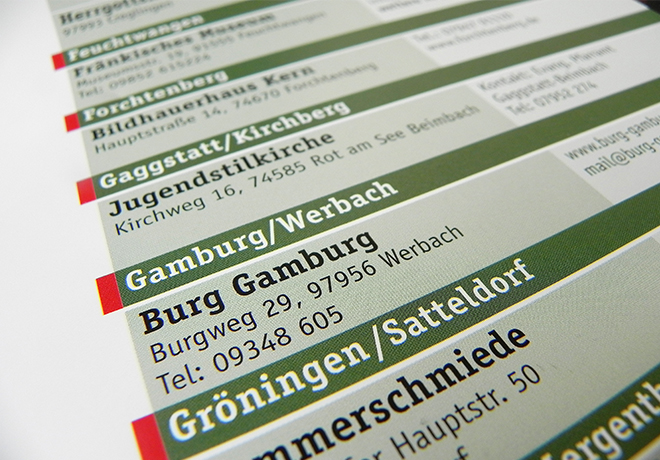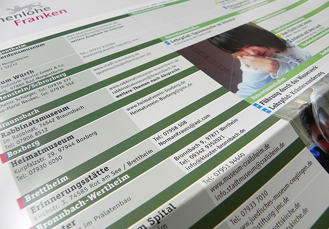 Eine nicht unwesentliche Herausforderung an die Tabellentypografie: Die Übersicht schulfachbezogener Angebote der Museen in Hohenlohe und Franken auf einem zweiseitigen A1-Plakat.