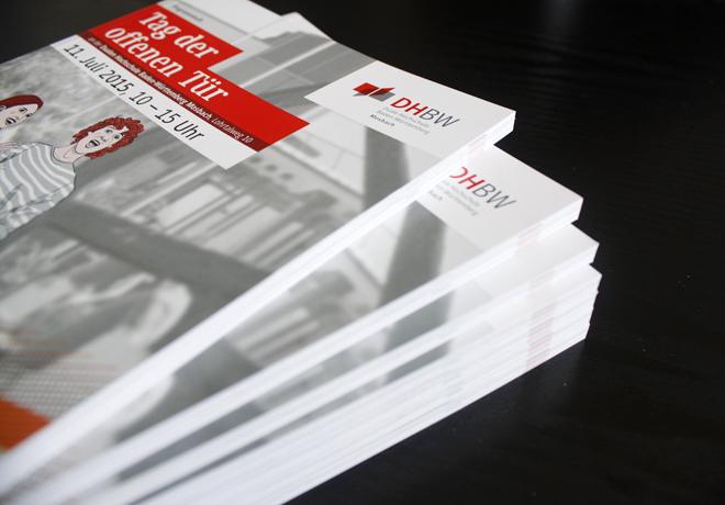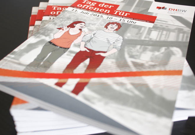 Studienbewerber und Unternehmensvertreter finden am „Tag der offenen Tür“ der DHBW Mosbach zueinander. Wir gestalteten die Medien auf dem Event und setzten das an Inseraten Programmheft um.