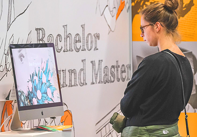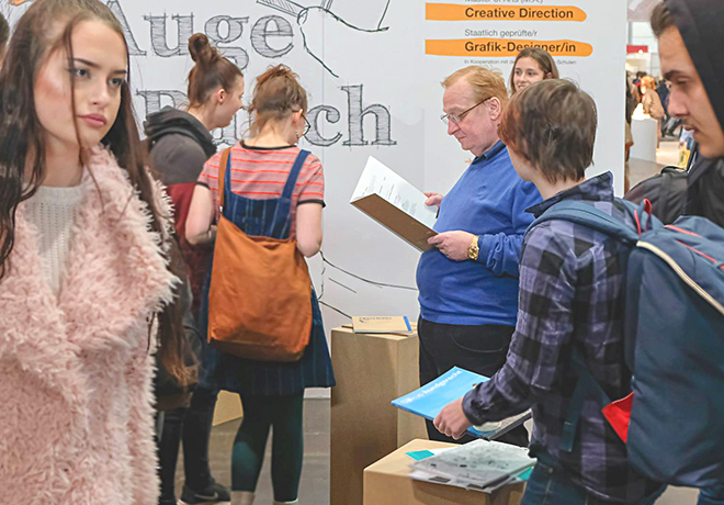 Potentiellen Bewerber zeigt der Messestand auf der Buchmesse Leipzig das breite Spektrum der Designausbildung zwischen Grundlagen und Abschlussarbeit. Ab dem Wintersemester 2017 ist die Präsenzvariante das einzigen akkreditierte Designstudiums auch in Leipzig möglich.