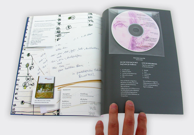 Der Katalog zum interaktiven Malprojekt "Heilbronner Malfabet": Die lokalen Betrachter wurden um Assoziationen gebeten, die bildnerisch eine Art visuelle Grammatik zutage fördern sollte. Der Diskurs über städtische Identität kam langfristig in Gang. Ein Projekt mit Gestalterkollege und Maler Bernhard Karlowitz.